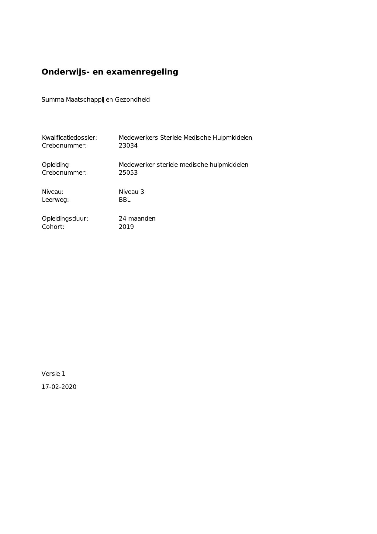 Medewerker steriele medische hulpmiddelen 25053BBL24.01 in cohort 2019-2020