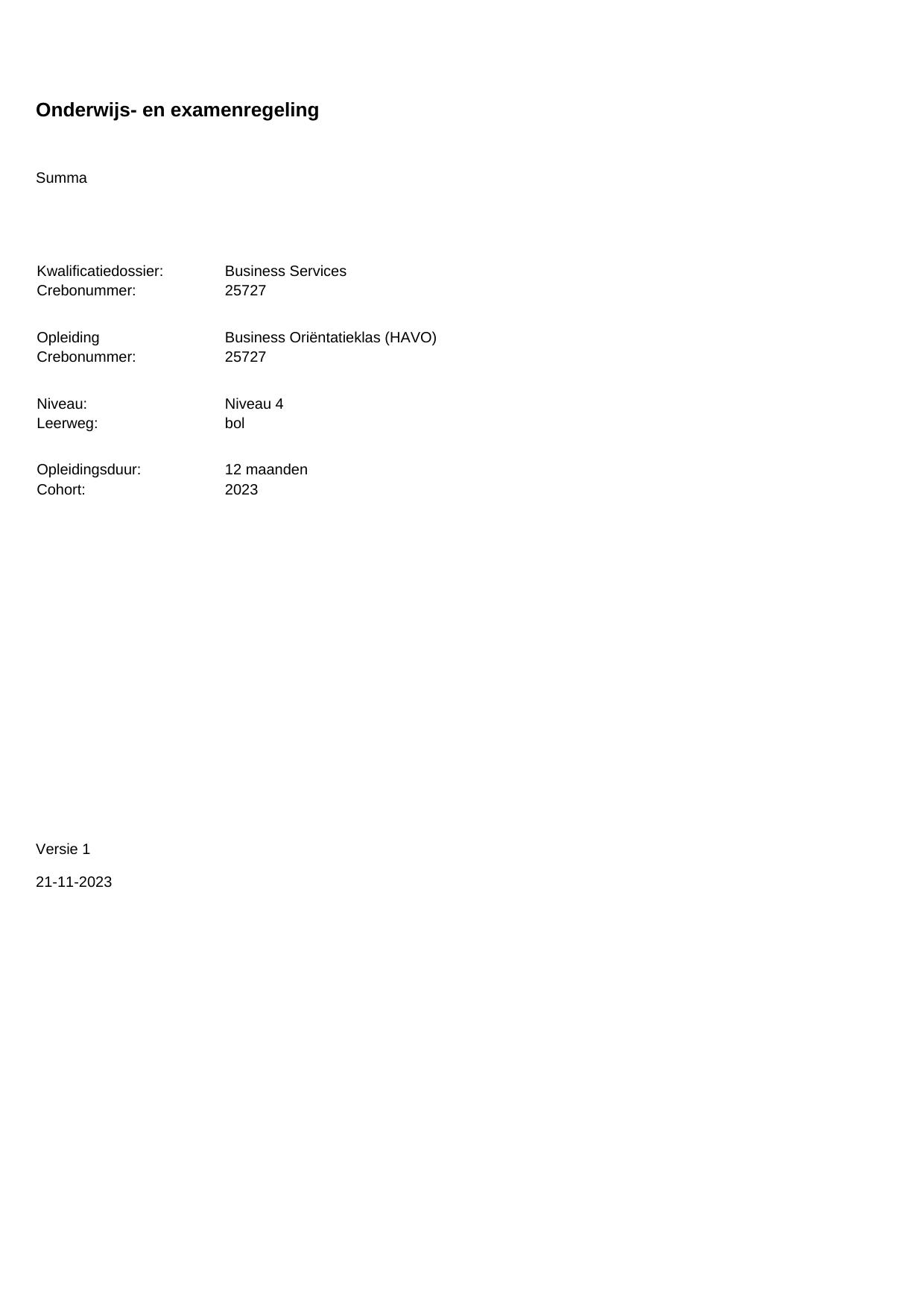 Business Oriëntatieklas (HAVO) 25727BOL12.01 in cohort 2023-2024